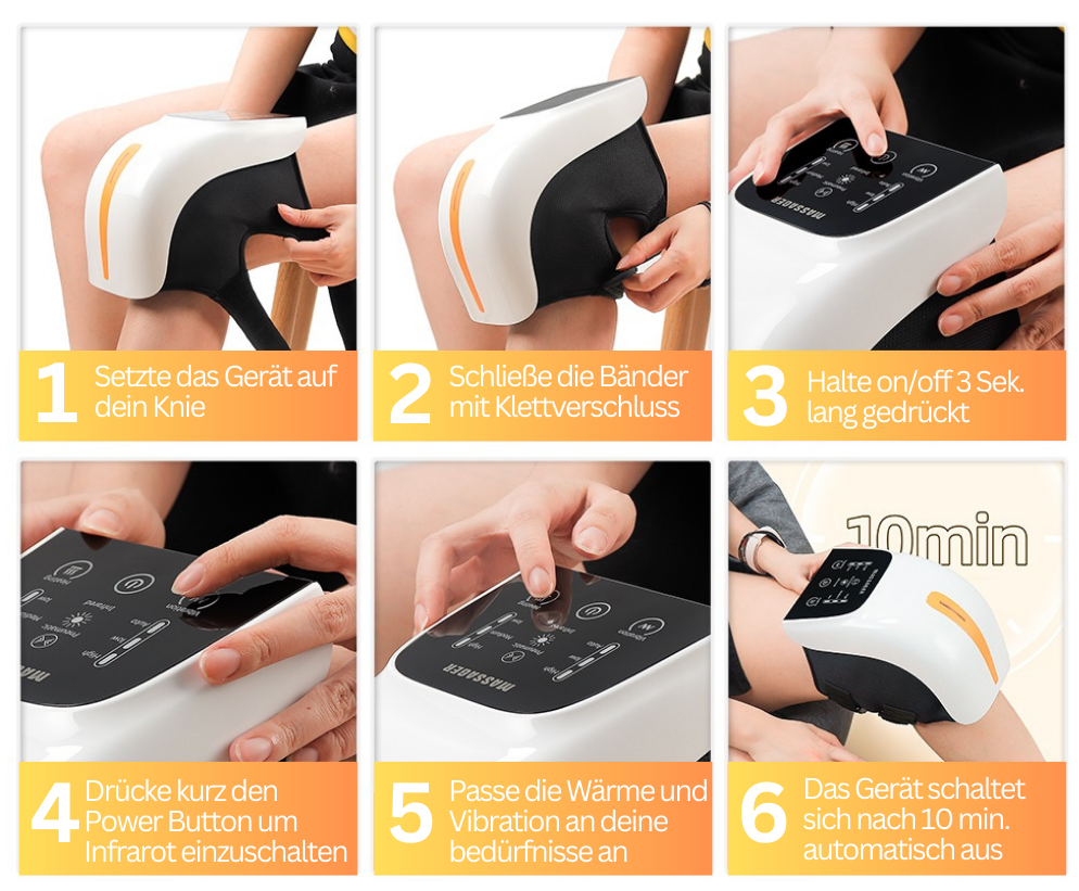 Les coussins d'air de massage souples enveloppent entièrement votre genou et procurent un effet massant sur les articulations douloureuses et fatiguées.